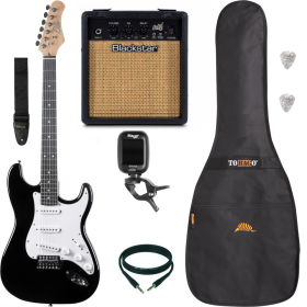 Pack Guitare Electrique :STAGG SES-30 Black + Ampli BLACKSTAR Debut 10E Black + Housse + Accordeur + Sangle + Câble + Médiators Fender