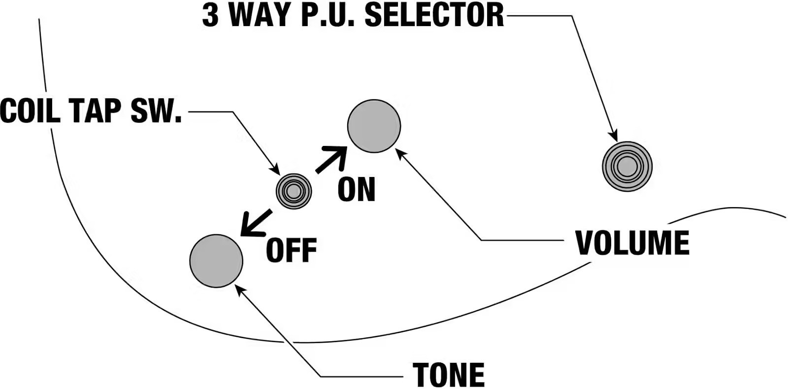 - Contrôle : 1 Volume, 1 Tonalité, 1 Coil-Tap